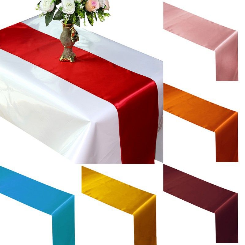 Champagne plain satin runners (14" X 108") are long pieces of satiny soft material which cover the center of the table primarily. These are long pieces of vibrant colors which cover the diameter of the table in its entirity. The colors may be displayed differently from actual color of the item. These pieces have exclusively smooth texture and are suggested to be machine or handwashed tumble dried and not neccesarily to be ironed before each use, rest is the preference of the user.