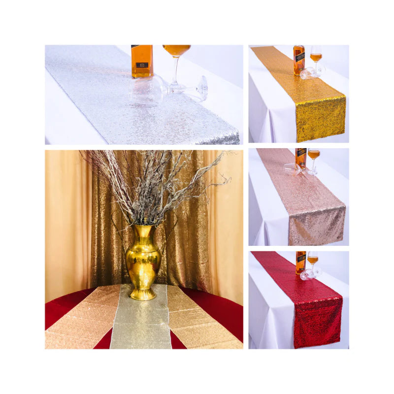Blush sequin mesh runner (13" X 108") are long and glittery pieces of sequin studded designer runners. The fabric used is of mesh primarily and shiny sequins embedded all around . These can be kept in a horizontal position covering the entire central area of the table. We suggest the customer to dry-clean this product before each use after the first use, rest is the preference of the user. The edges are well knit which don’t come out easily.